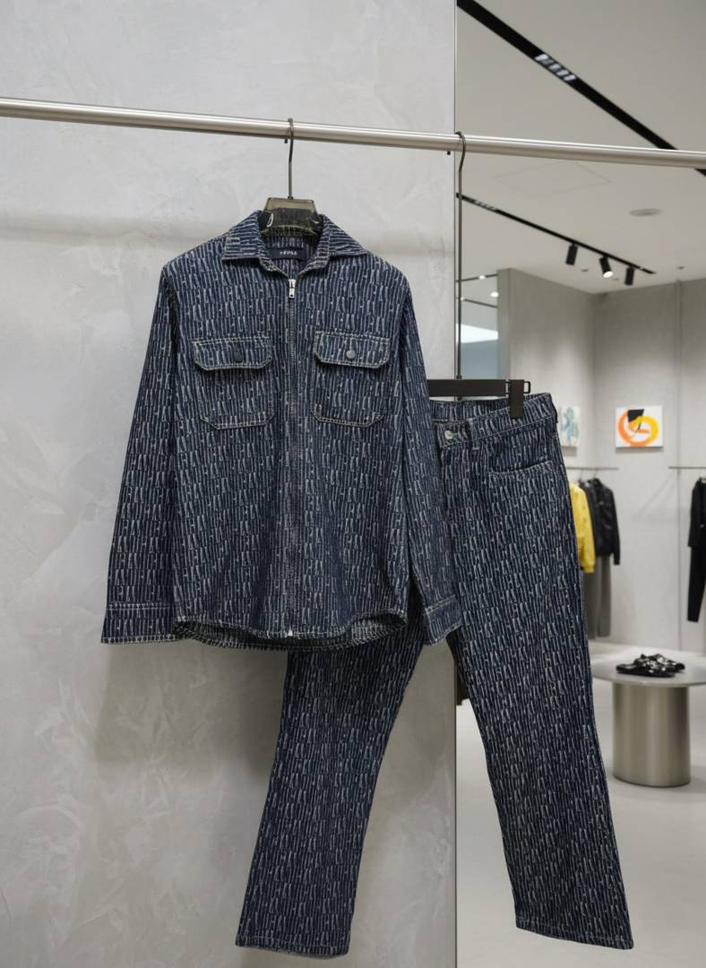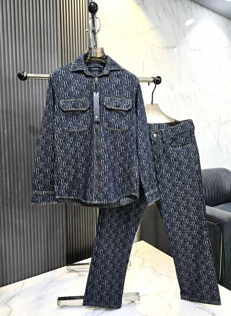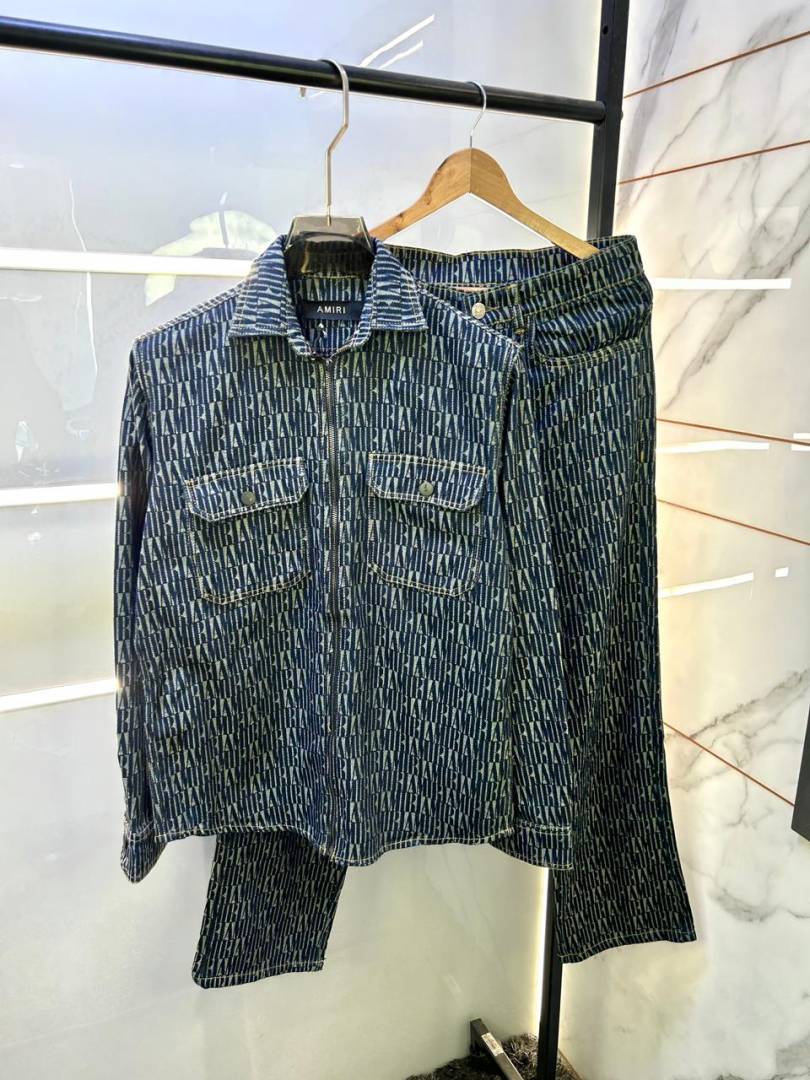 Amir i Imported Monogram Print Green Super Premium Denim Track Suit F3333-BL