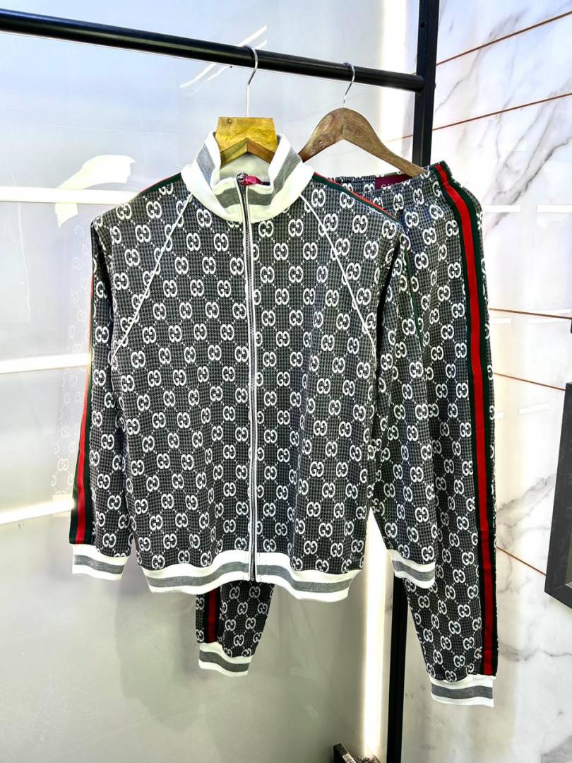 Gucc i Imported Grey Monogram Super Premium Track Suit With Brand Carry Bag F3149-GY