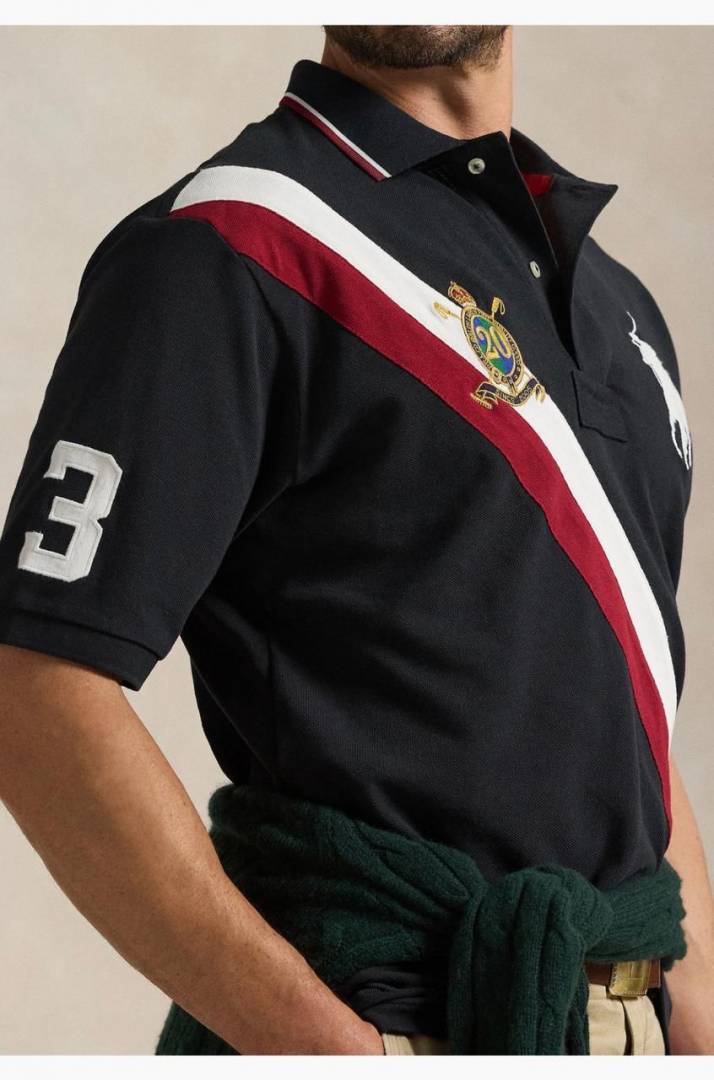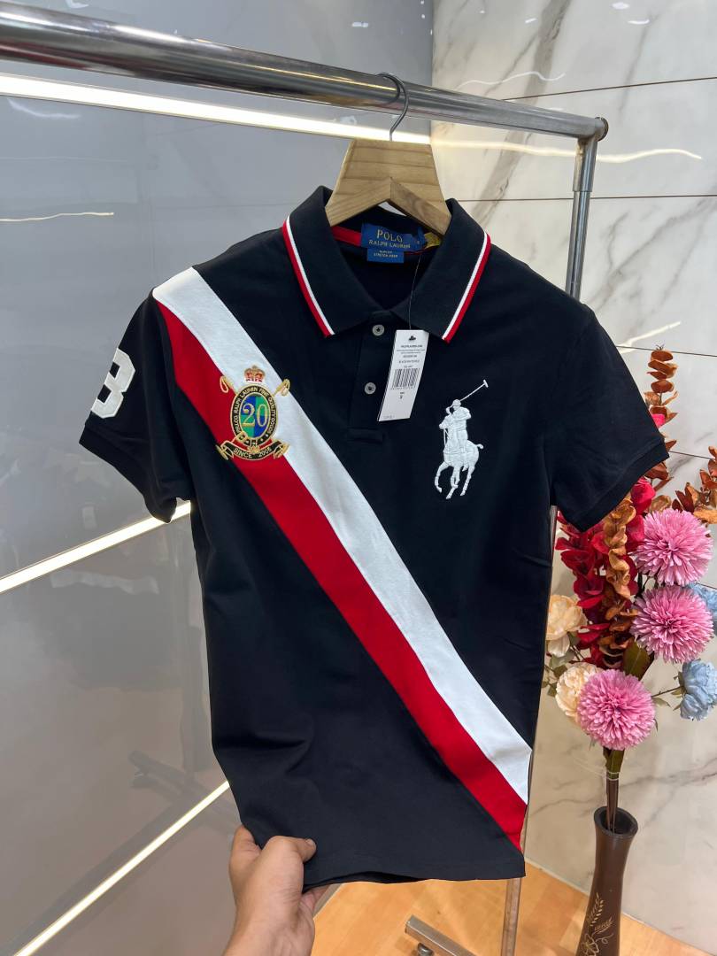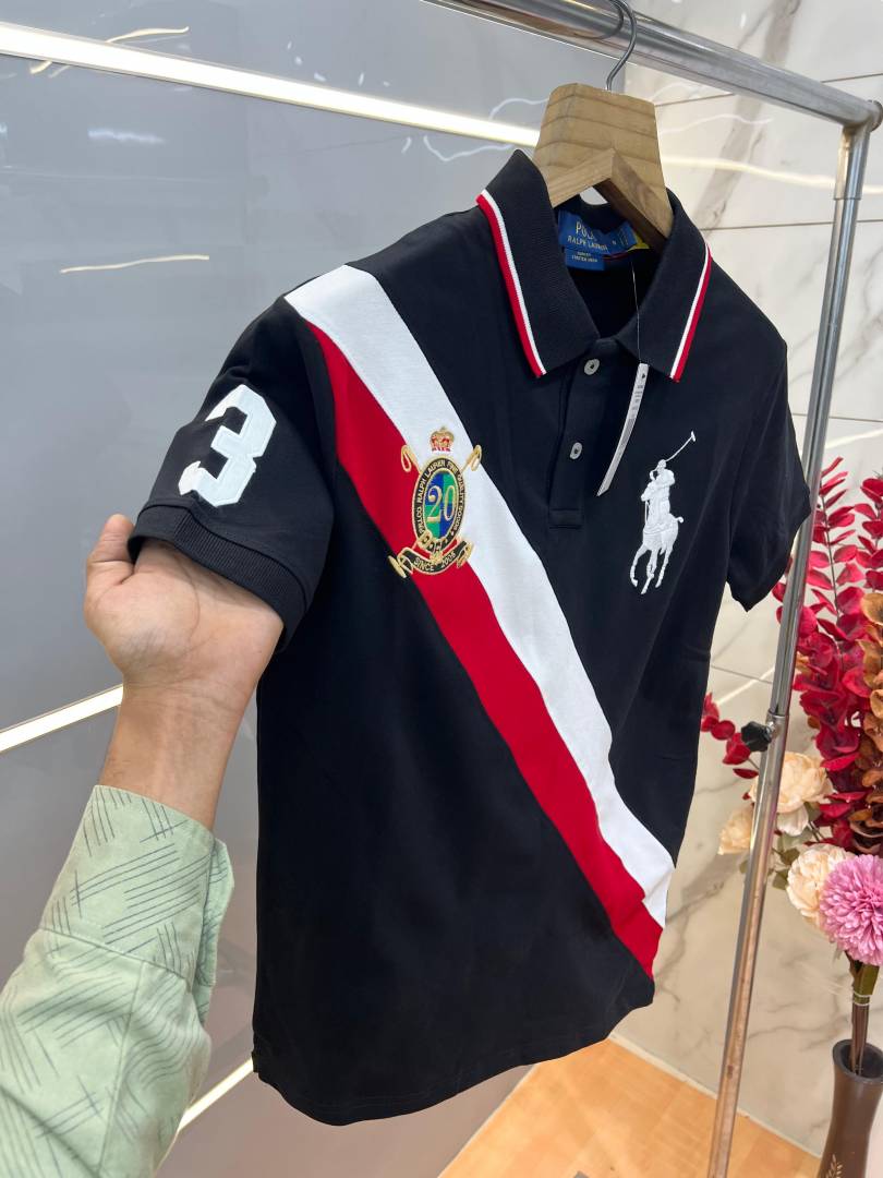 Ralp h Laure n Black Premium Cotton Pique fabric Polo Tshirt with Front Design and Embroidered Logo 3794